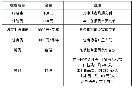 我校实行全员保险制。学生在报到第一天需购买保险,保费为:每年800元人民币。保险是学校办理手续的必备材料。学生不得拒绝购买和断缴。
